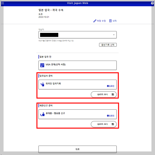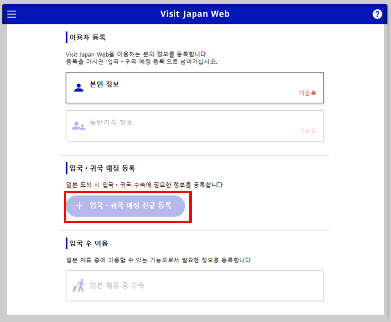 - 필요한 수속 정보 등록(검역, 입국심사, 세관신고 등)