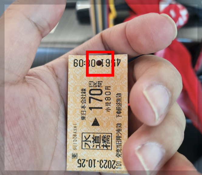 발권을 받은 다음에 출발하는 개찰구에 넣으면 통과가 가능하고 꼭 개찰구에 넣은 다음에 조그만하게 구멍이 뚫려 있는 표를 회수를 하시기 바랍니다. 목적지에 도착 한 후에 목적지 개찰구에 넣으면 통과가 되게 됩니다.